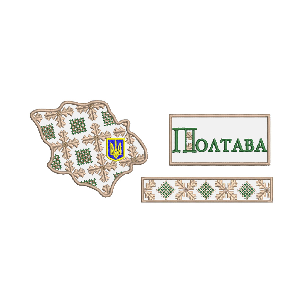 Опис орнаменту: На білому тлі в діагональному порядку заповнення почергово розміщені мотиви скосого чотирьох пелюсткового фітоморфного мотиву та малих ромбів між ними.